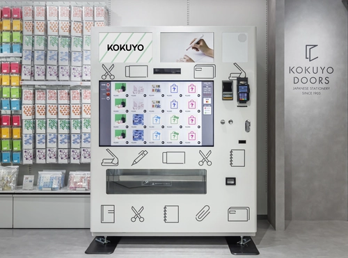 コクヨが手掛ける文具のIoT自販機。長年コクヨは、小さな文具に込められたユニークな魅力を、店頭でどう伝えるかを追究してきました。そうした中で出会ったのが、デジタルサイネージを搭載したIoT自販機。映像やタッチパネルを活用して商品の魅力を直感的に伝えられるだけでなく、文具がギフトボックスや紙袋に包まれた状態で音楽に合わせて出てくるという演出が、体験としてのおもしろさを提供しています。