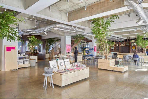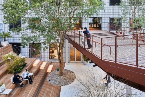 コクヨが東京・品川に構える築40年の自社ビルをリノベーションし、街に開いたオフィスとして2021年に開業しました。“みんなのワーク&ライフ開放区”をコンセプトに、さまざまな専門性や経験を持つ人々と、オフィスを通して「働く・学ぶ・暮らす」の実験をする場として設立されました。お客様がオフィスを見学できるライブオフィスやショールームとしての機能に加え、新規事業開発のラボや、感性を刺激するアートや緑あふれる空間、近隣住民やお客様が自由に利用できるコーヒースタンドやショップ、公園的広場など街に開いたさまざまな機能を併設しています。社員だけではなく多様な人々の価値観が交わりながら、新しい化学反応を生み出し続ける拠点となっています。