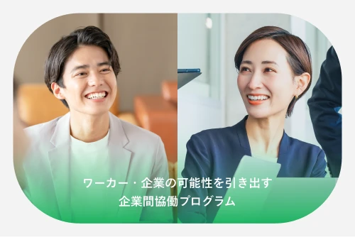 事業課題に取り組みたい企業と、社員の成長を後押ししたい企業・ワーカーをマッチングするコクヨ独自の複業サポートサービス。ワーカーは他社のフィールドで新規事業の立ち上げや戦略立案といった実践を通じて、自身の培ってきたスキルを試しながら新たな経験を積み、それを所属企業へと還元していきます。送り出す企業には人材育成やエンゲージメント向上といったメリットが、受け入れ企業には外部の知見を活かした課題解決と組織活性化が期待できます。コクヨは、人選・契約からメンタリング、アセスメントまで一貫してサポートし、両社と伴走。