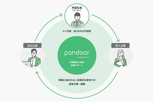 pandoorが送出企業・受入企業・ワーカーの3者の中心となって、異業種・他社の環境で実務経験を積めるよう半年間の越境ワークをサポートします。
