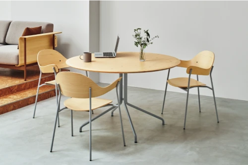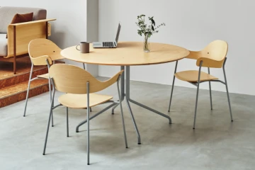 15年の森林保全活動を経て、荒廃していた森が徐々に健全な姿になりつつある一方で、身近な製品の中で国産木材の活用が進まず輸入木材に頼っているという状況がありました。この状況を課題と捉え、森林のあるべき姿を保ち続けるために、育成・間伐された木材をできる限り無駄なく活用していく活動のひとつとして、家具ブランド「yuimori」ができました。オフィス空間への提案にも本製品を取り入れ、オフィスにとって国産木材が当たり前に使われる素材になることを目指しています。