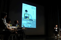表彰式の後半は、審査員によるトークショーを開催。受賞作品の講評や作品に求める視点、テーマである“キャンパス=「学び」のデザイン”についての審査員 各自の思いが語られました。また、審査員と受賞者との質疑応答もあり、デザインを志す者同士の活気あるやり取りは観客にもしっかりと伝わり、受賞作品に対 するリアリティや納得感を引き出していました。