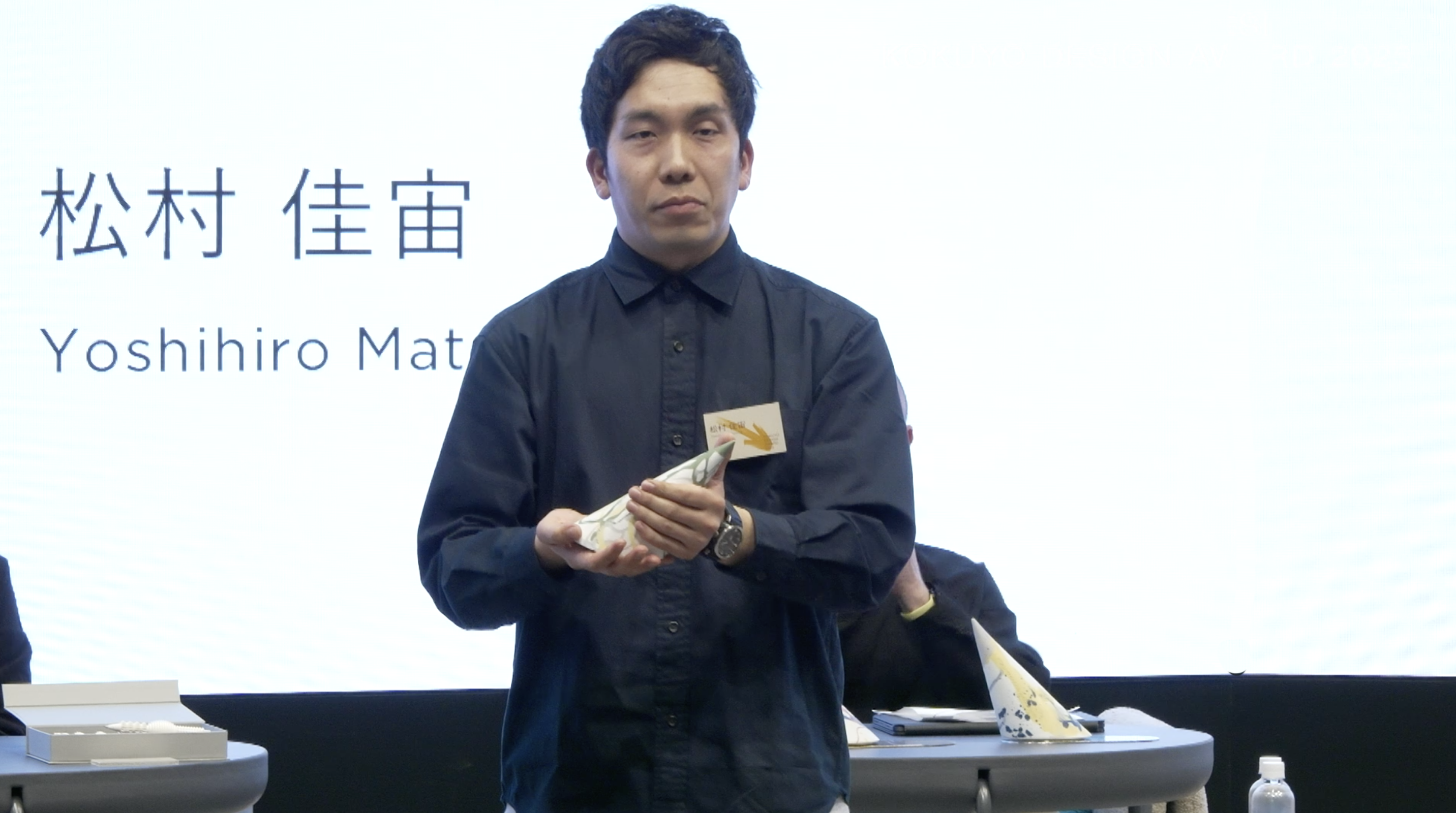 マグネットのかぎかっこで強調することで、情報に感情を与えたのが松村佳宙さんの「KAKONET」です。コミュニケーションをデザインする純粋な視点と、作者の人柄がにじみ出たプレゼンテーションが審査員の心を動かします。一方で、かぎかっこの形状に検討の余地があるとの指摘もありました。松村さんも「形やサイズ感、質感は迷いました」と振り返りました。マグネットというアイテムにとどまらず、誰かが誰かのために何かをセットするという可能性が広がる作品でした。
