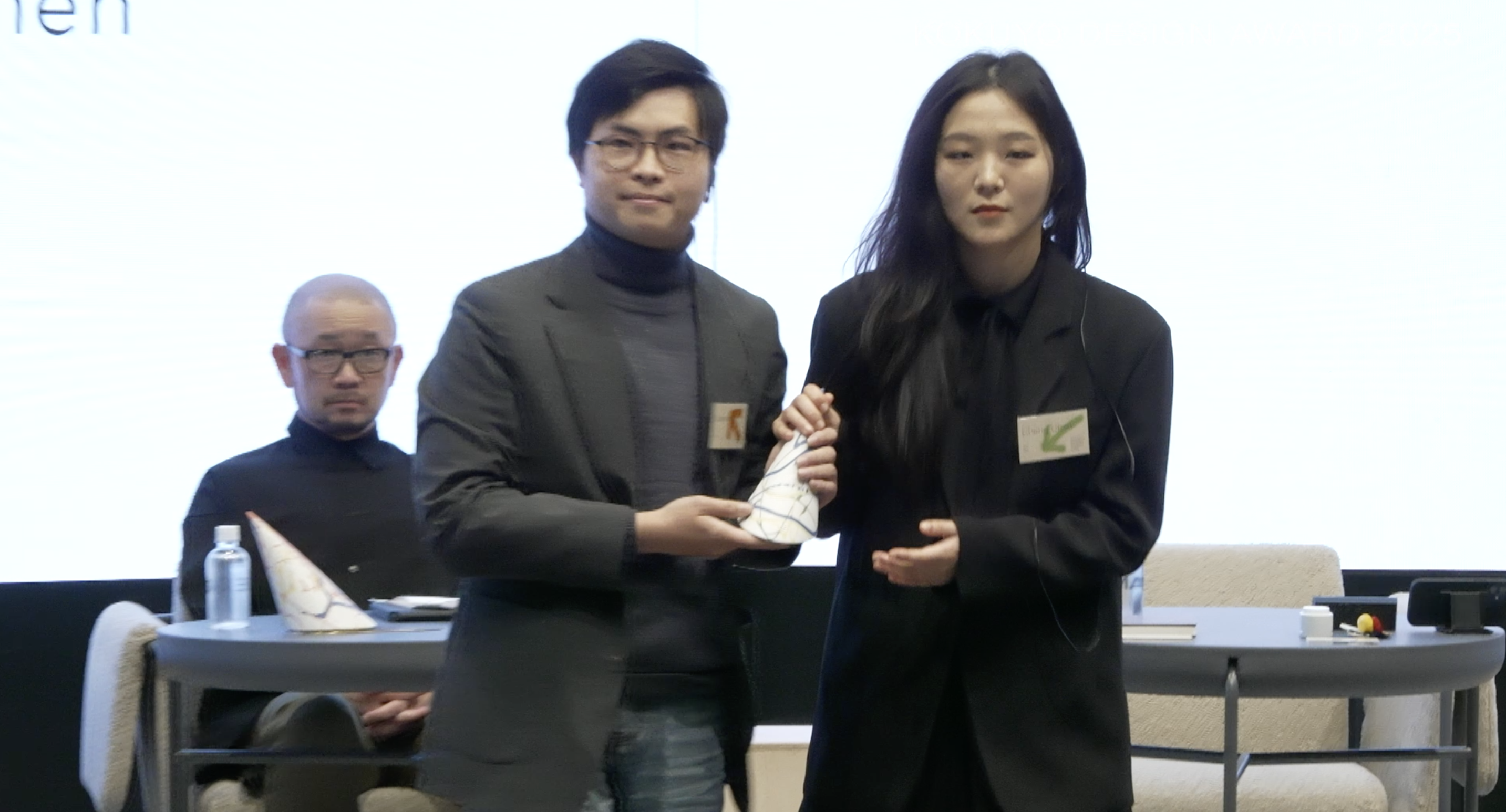 人間の指先には多くの神経が集中しており、指先を刺激すると脳の働きが活性化されます。アイデアを生み出すことをサポートするために、12種のグリップ部分にさまざまな形状の突起を施しました。3Dプリンターでの無数の検証を経て、エッジが立つよう硬いセラミック素材を採用。ペンと呼ぶには異質なため、当初は「美しいとは思えない」「素材などに検討の余地がある」といった厳しい声も。一方、実際に使った審査員は、触ると突起の刺激を実感でき、印象が一変すると指摘します。そこから、神経を起点に触覚から見出した形状という、新しいアプローチが見えてきました。「いかに目に騙されているか。深海魚のようなもの。深海魚には合理性がある」と議論は白熱。やがて新しい何かを生む、未来への可能性を感じると意見はまとまり、グランプリに決定しました。川田さんは受賞後に「触覚や脳が刺激されているかに重きを置き、そこからの美しい造形を目指した。使ううちにペンが動く心地よさを評価されたのはうれしかった」とコメント。今後、どう合理性を深掘りしていけるか、さまざまな余地があるだけに、期待は高まります。