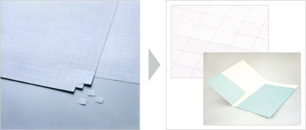 この作品をぜひ商品化したい。そう判断したときから、コクヨのあくなき挑戦は始まりました。まず検討したのは、この商品の肝となるミシン目部分。A4サイズの用紙にレーザーカッターでミシン線を入れ、繊細な仕上がりを目指しました。さらに、ミシン目のピッチについて数パターンの試作品を作製。見た目の美しさはもちろん、線の切れ味なども検証しました。また、ミシン目は罫線にもなるので、さまざまな筆記用具による書き具合を調査しました。このようにありとあらゆるテストが重ねられ、最適なピッチを決定しました。