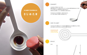 そうですね、僕は応募するときに、"さじおたま"を実際に使っているシーンを写真に撮ってそれをメインビジュアルにしました。この作品で表現したかった"さじ加減"をはかっている瞬間。それを一枚の写真におさめました。そうすることでシズル感が伝わったのではと思っています。必要なのはモノを生むためのアイデア、そしてそれを表現して魅力的に見せるためのアイデア。じっくり考えて、世の中が驚くようなものを創造してください。