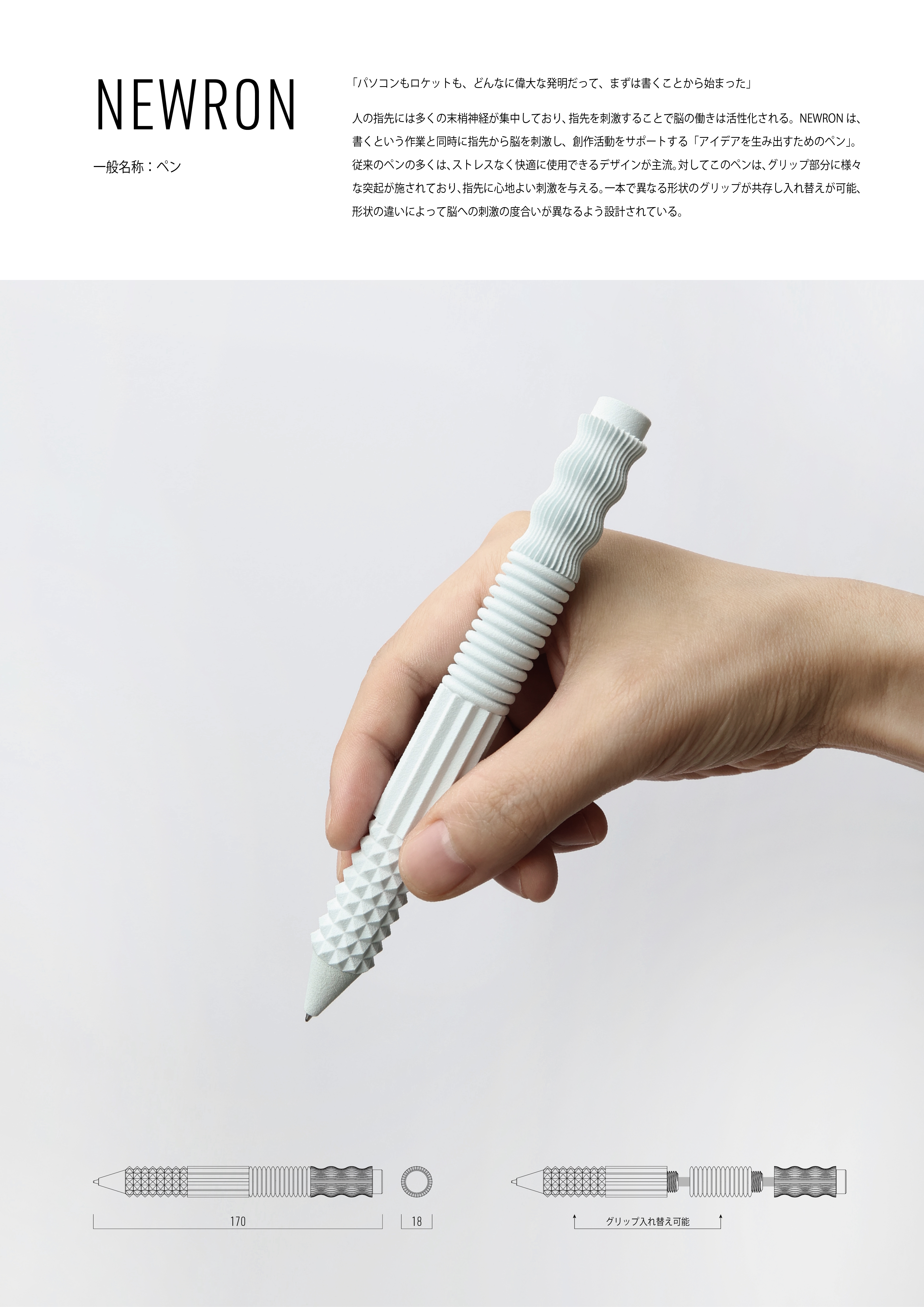 "NEWRON" won the Grand Prix out of 1,448 entries in the KOKUYO DESIGN AWARD 2025. With its rough, uneven surface that provides an impactful sensation to your fingertips, this writing instrument has been designed as a "tactile tool" to help bring out ideas. The extreme design does not provide comfort to the person holding it, but instead delivers a sensation that borders on pain. We spoke with Mr. Toshiyuki Kawada, the recipient of the award, to find out what kind of thoughts he put into it.