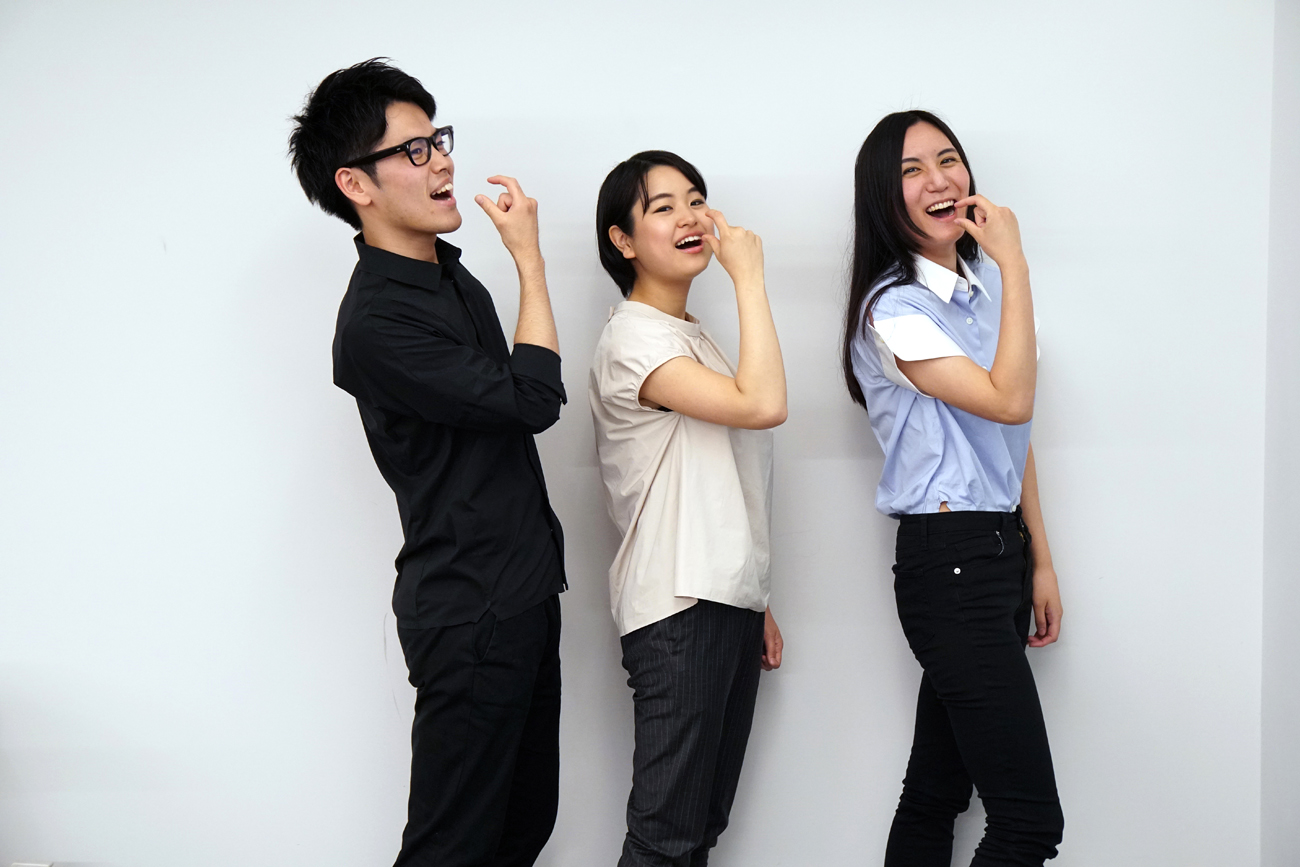 The three members of nyokki (from left, Daisuke Kakinoki, Haruka Mitani, Yuki Yawata). They were in the same course in university and entered the competition together. The team name, nyokki, comes from the game “Takenoko Nyokki,” which they and their university friends loved to play. It carries the members’ wishes to “freely grow and pop out ideas that are fun and easy to understand, with simple rules like the game, which is played in large groups and which anyone can join quickly.”
