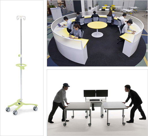 This is a furniture system that uses tables with casters etc to allow for the easy setting up of the kind of collaborative environment that’s required for various processes such as planning, design, prototype review, in places where R&D activities take place (research institutes and laboratories etc). Regardless of whether it’s used in a lab or a conventional office, this product makes it possible to create the optimum environment for collaboration.