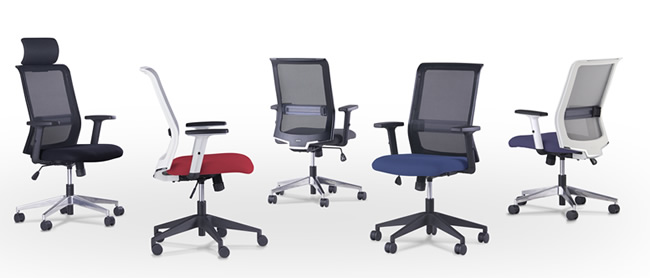 The ENTRY is a standard office chair designed for the use of regular workers and carries on the traditional design, functionality, and seating comfort of the AIRFORT management chair that has been received well at home and overseas. The ENTRY comes equipped with a four-level adjustable lumbar support as a standard feature to support individual differences in the shape of backbone (from S type to I type) and is designed to reduce the weight on the lumbar region when working long hours. Variations include with or without a headrest, two types of legs (resin or aluminum), two colors of frames (white or black), and five colors for the coated cloth, which can be chosen to mix and match.