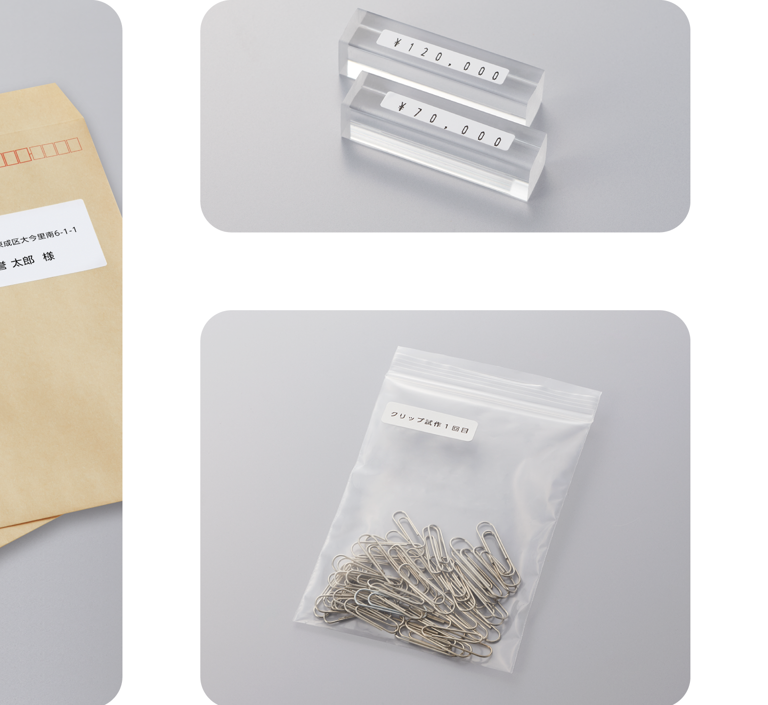 パソコンでラベルを編集し、タイトルブレーンクロスで印刷できます。