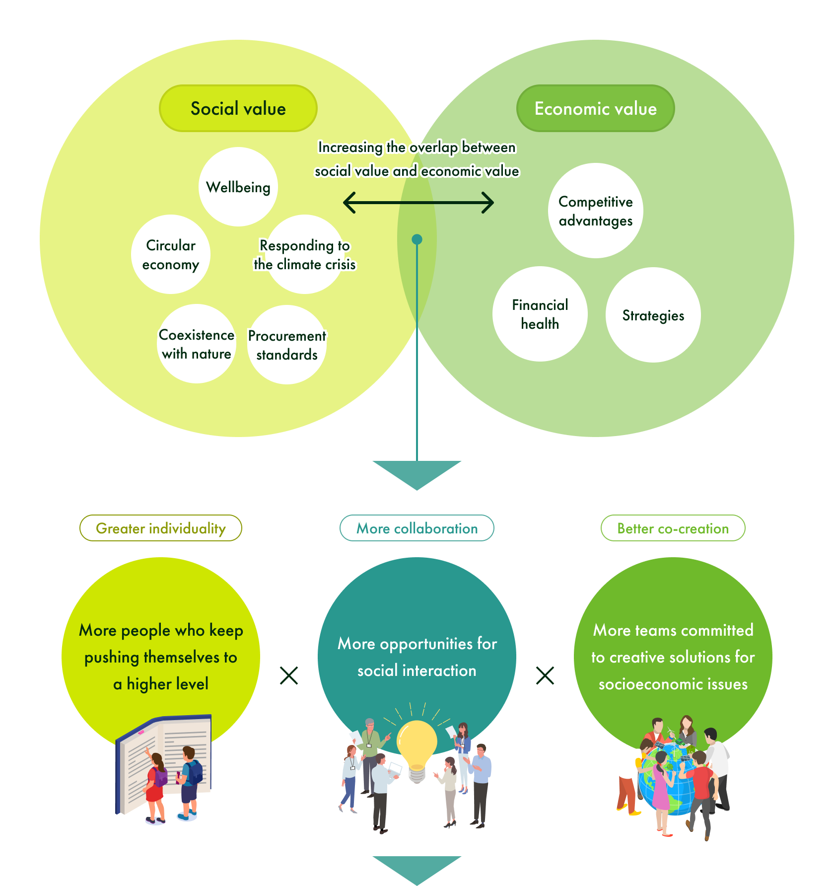 KOKUYO must increase the overlap between social value and economic value.