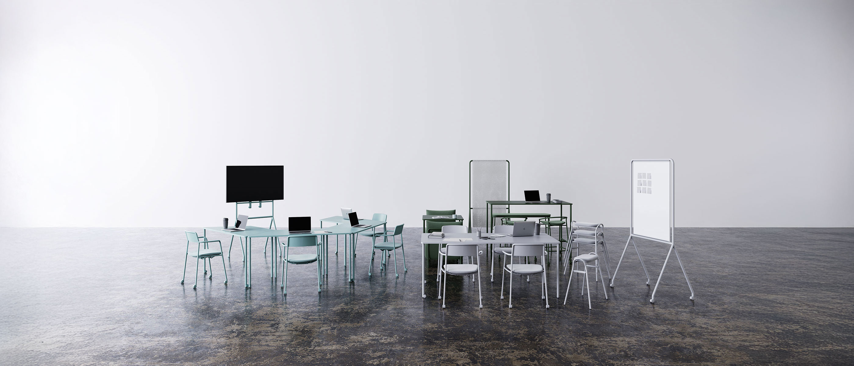 場とファニチャーを組み替え、アイデアや議論を深める。