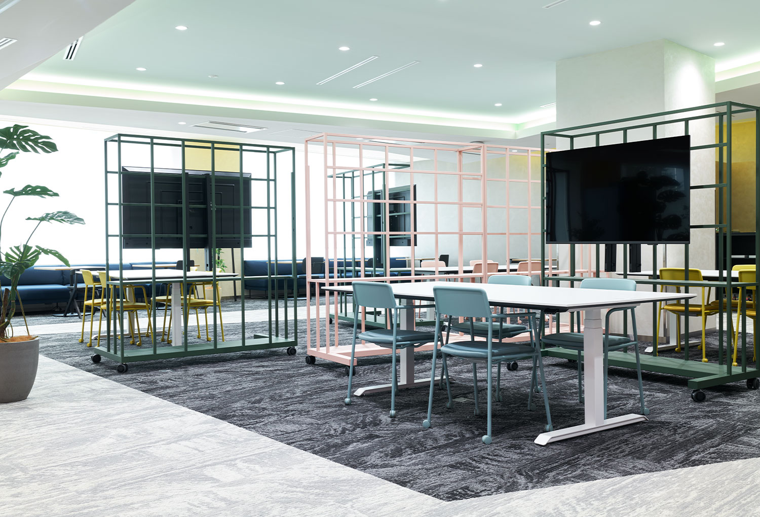 この取り組みに対し、コクヨは「集う」をテーマに、開放感のある空間を提案。目的やワークスタイルに応じてレイアウトや機能を組み替えられる、フレキシブルな環境が実現しました。