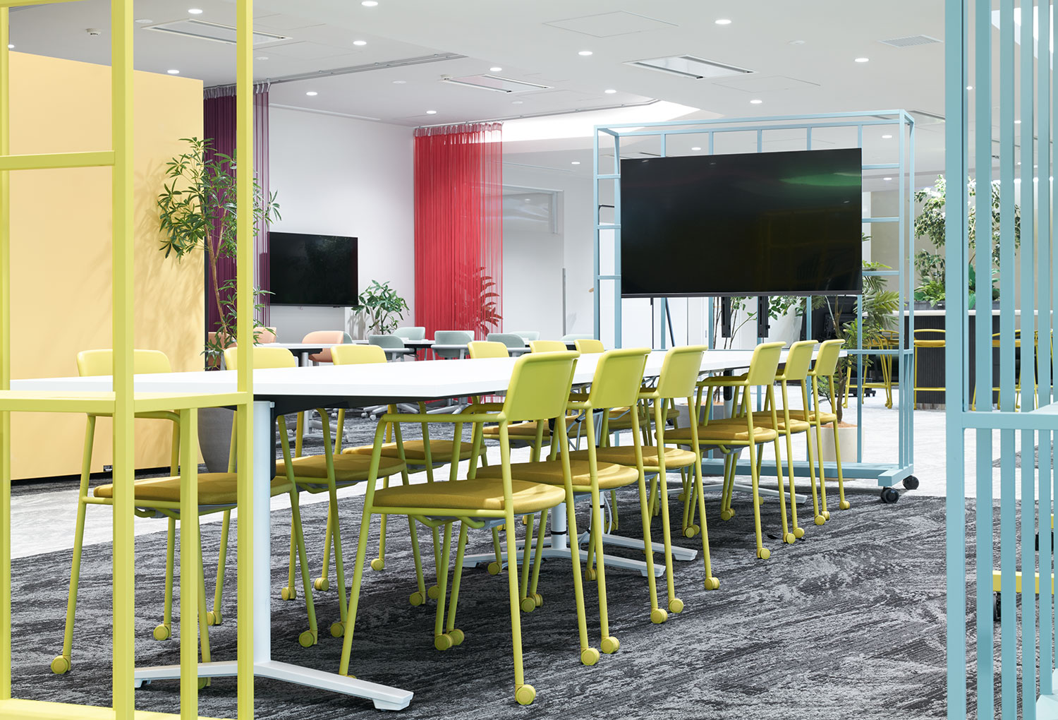 中央エリアには、チェアやテーブルなど、Any wayシリーズを多数採用。軽やかなデザインと豊富なカラーバリエーションが、五感への刺激を通して創造的思考を促す、個性あふれる空間をつくり出しています。