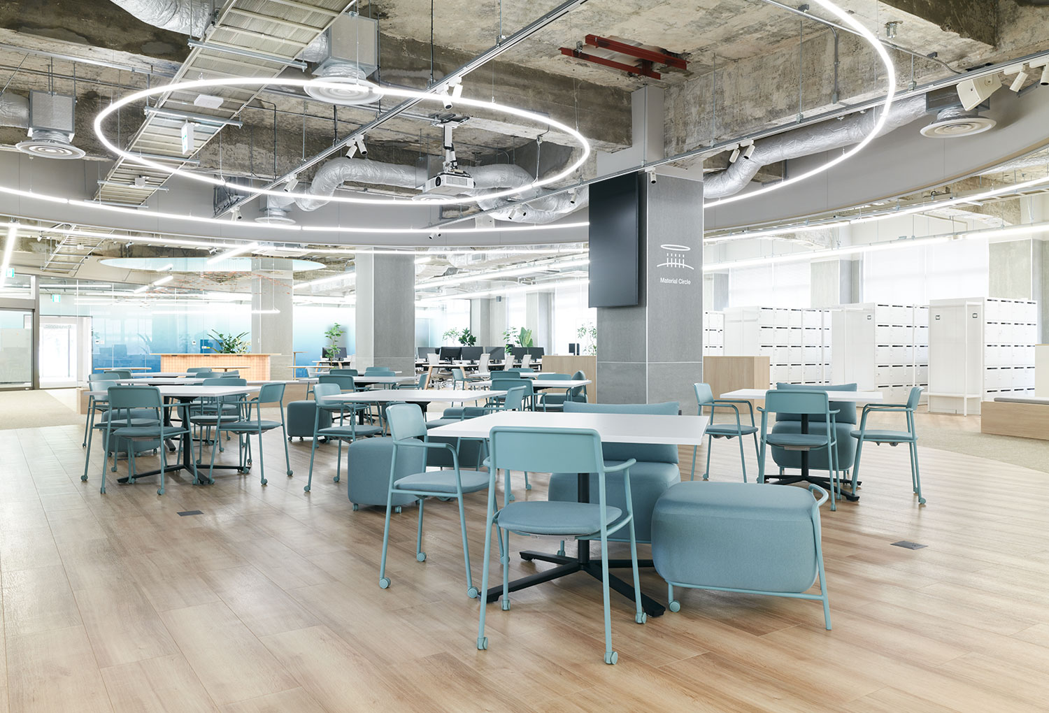In addition, a central multifunctional circle area and the introduction of hot desking have invigorated communication across departmental boundaries. Meetings that once took place mainly in conference rooms are now a common sight in open areas, allowing information and ideas to circulate more widely throughout the office.