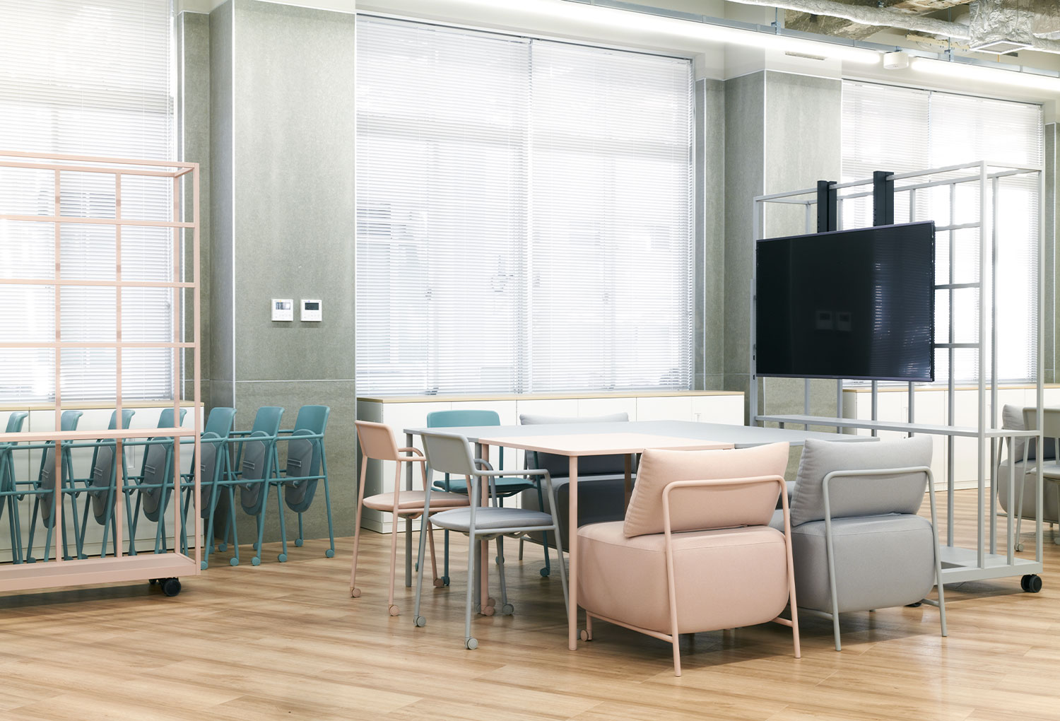 Any way は、柔軟に形を変えられる “動かせる働く場” として、新オフィスの活気と創造性を力強く支えています。