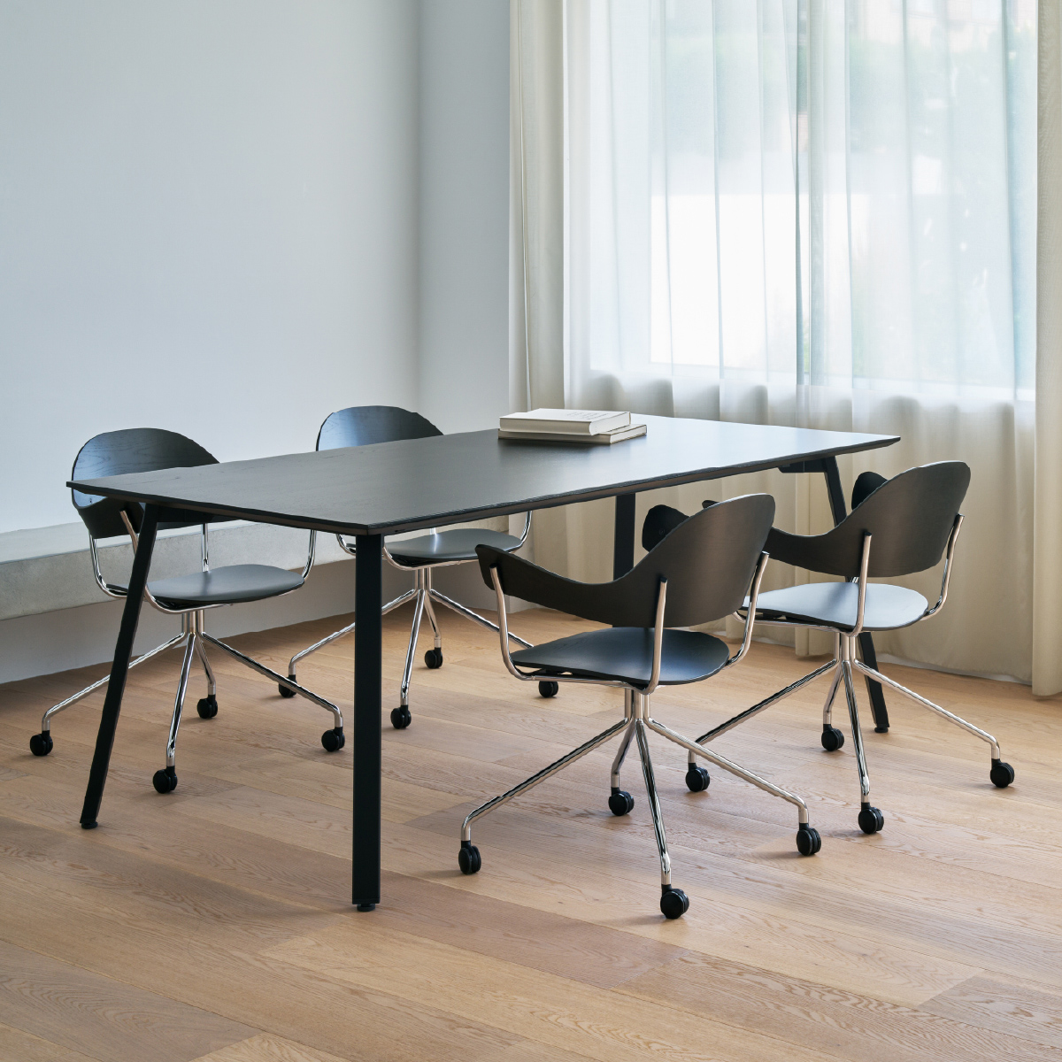 多様な人々が集い、交わる、カフェスペースをイメージして生まれたチェアーシリーズ。アイデアを共有したり、リラックスして一息ついたり、オフィスにおけるさまざまなシーンを彩ります。