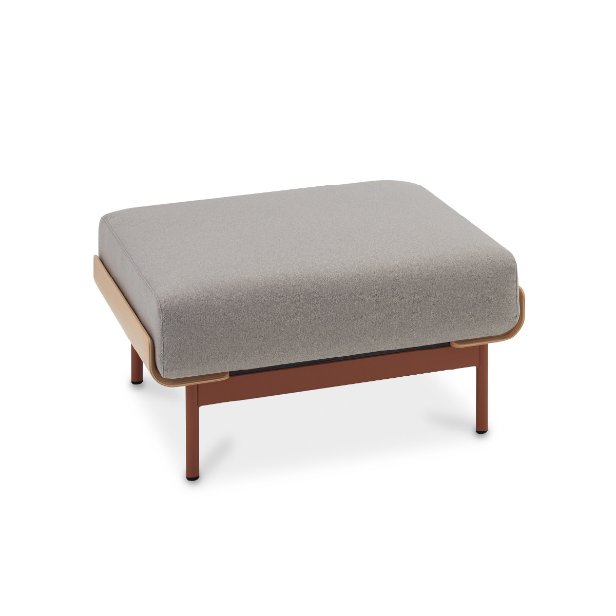 柔らかな座のクッションをゆるやかにカーブする木部が支えるオットマン。