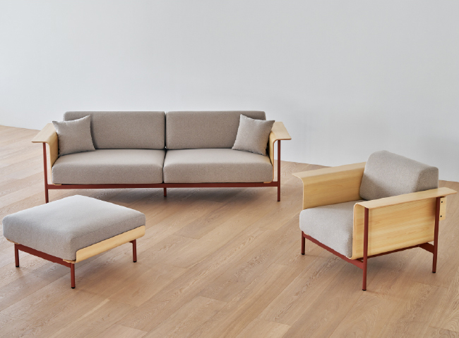 リラックスした空気に包まれながらのコミュニケーションやソロワークなど、多彩なワークシーンが展開されるラウンジスペースをイメージして生まれた「ym-03」シリーズ。