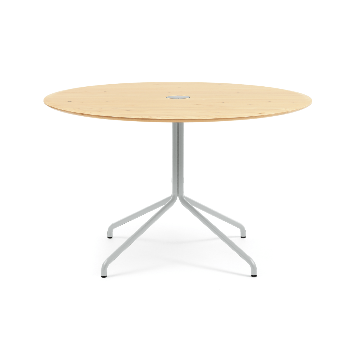 アイデアを共有したり、リラックスして一息ついたりなど、さまざまなシーンを彩ります。天然木ならではの優しく温かみのある手触りの天板と、軽やかでオーガニックな造形を取り入れた脚のラインを特徴とするほか、オフィスにニーズの高い電源機能も携えています。