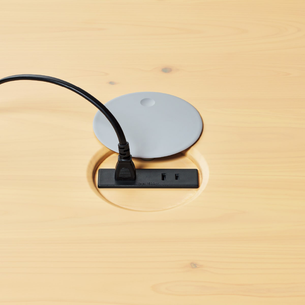 脚色と同色のコンセントカバーや脚に沿わせてとめる付属のクリップは、素材感を活かしながら機能性も併せ持った造りに。