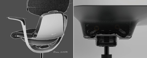 デザインを行うにあたり、キーコンセプトとなったのは「Float / 浮遊感」 と「Active / アクティブ」。まるで滑空しているように360度自由に動くことができる乗りごこちを造形全体で表現することで、その動きやポテンシャルを想起させることを目指しました。また、スニーカーやアスレジャーファッションのようにカジュアルでスポーティーなテイストを表現することで、健康的で活気あふれるワークプレイスの演出が行えるのではないかと考えました。従来のチェアに多いスタティックなチェア表現とは違い、動きを感じるアクティブなチェアにすることを狙っています。高い機能性をメカニカルに表現するのではなく、ラフでカジュアルな印象にデザインしていくことで、人により添うやさしい存在にしていこうと考えました。