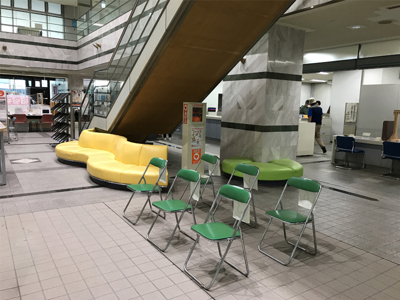 川原氏:以前の待合エリアは、ロビーチェアーに統一感が無く、来庁者動線を意識したレイアウトではありませんでした。何より3人掛けなどの長イスだけでしたので、飛沫感染対策でフィジカルディスタンスを確保するには真ん中の席をつぶして座れないようにするしかない。結果、座れる席が減ってしまうことが大きな問題となっていました。