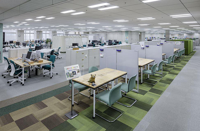 総務課では2022年3月末にオフィスリニューアルを実施した後、更なる改善のため約2カ月後にレイアウト変更を行いました。MULTIS はキャスター付きで動かしやすく、1200mm×600mmのサイズはレイアウトもアレンジがしやすいです。オプションのパネルは場所によって使い分けることで、執務環境にバリエーションを持たせることができています。
