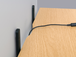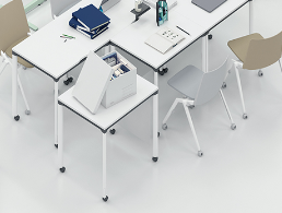 天板切り欠き天板は1辺に切り欠きを設けたデザインを採用。パネルオプションを取り付けた状態やテーブル同士を連結した状態で、小物トレーや配線を出すことができます。