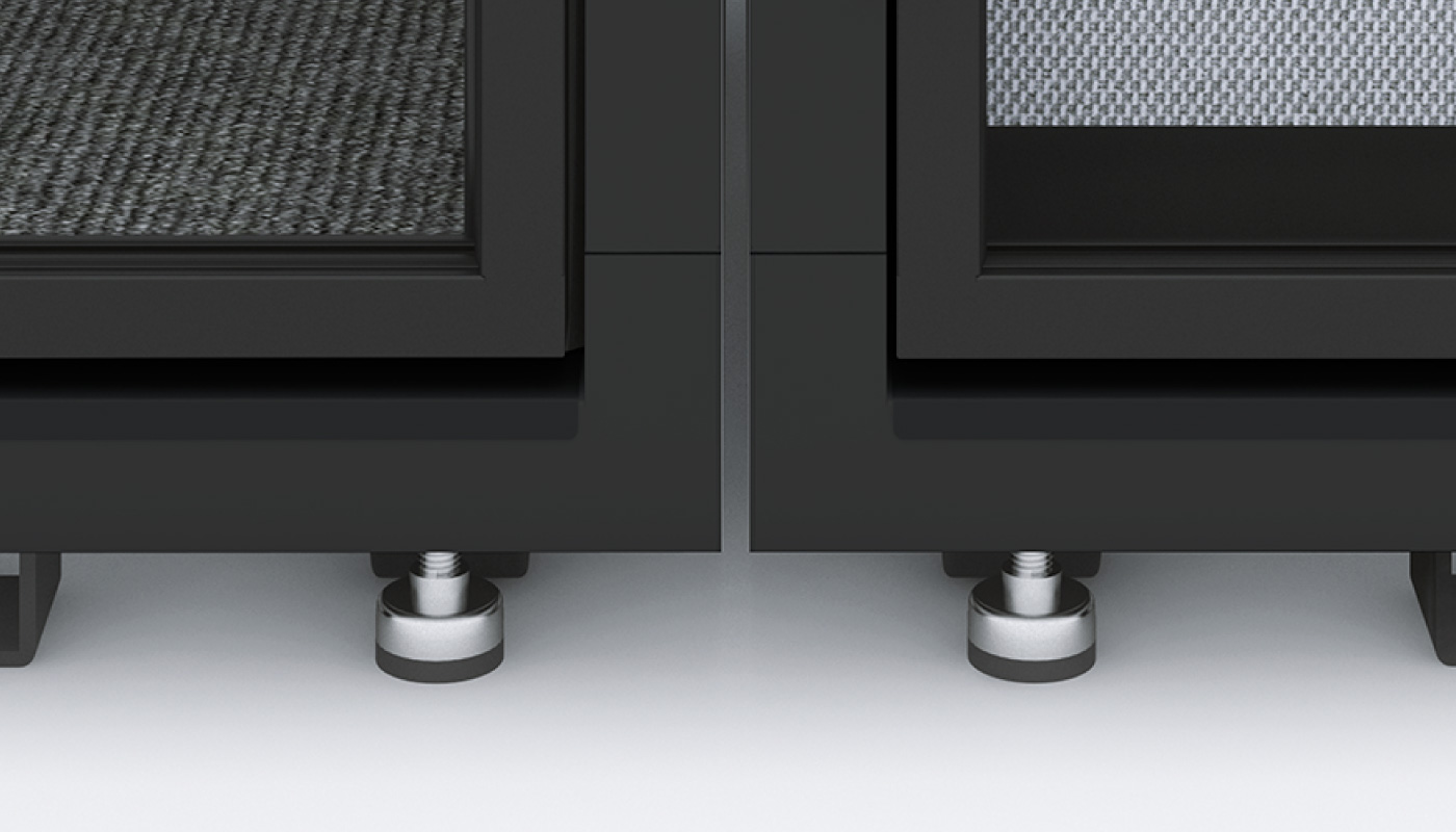 アジャスターでレベル調整が可能です。床固定金具が標準で付属し、耐震や安全性に配慮しています。
