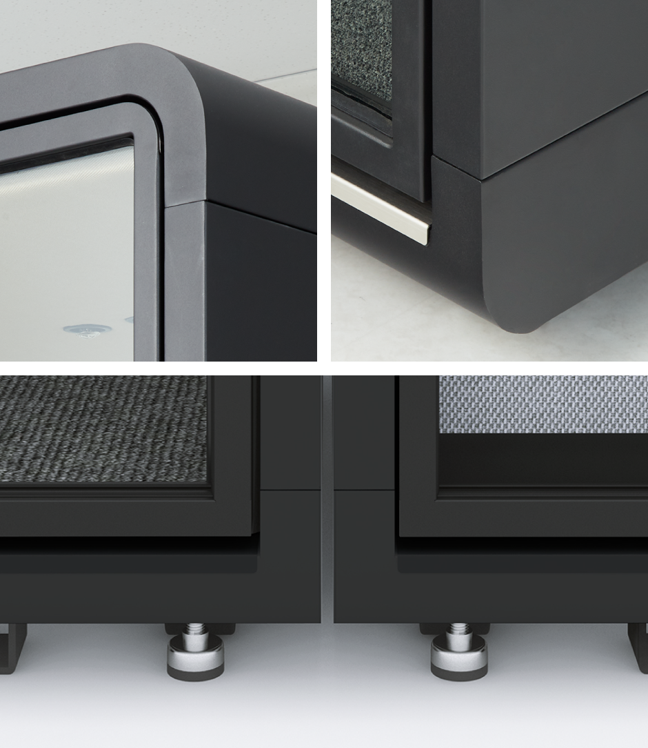 コーナー部のアールは、上部と下部で90°向きを変え、複数台を並べて設置した際に、下端のラインがきれいに揃います。