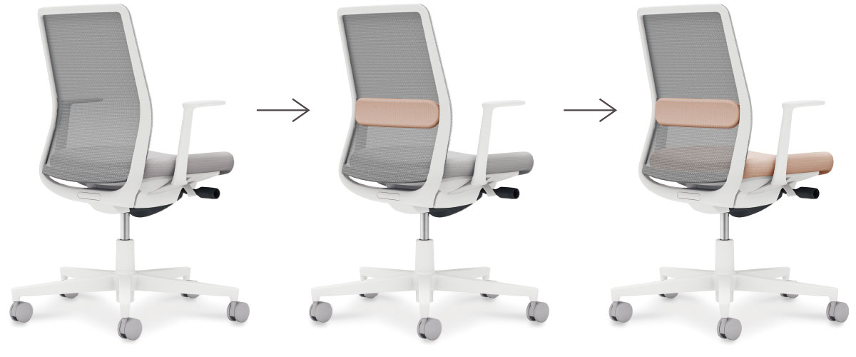 背メッシュタイプは座クッションの交換やランバーサポートの着脱が可能。