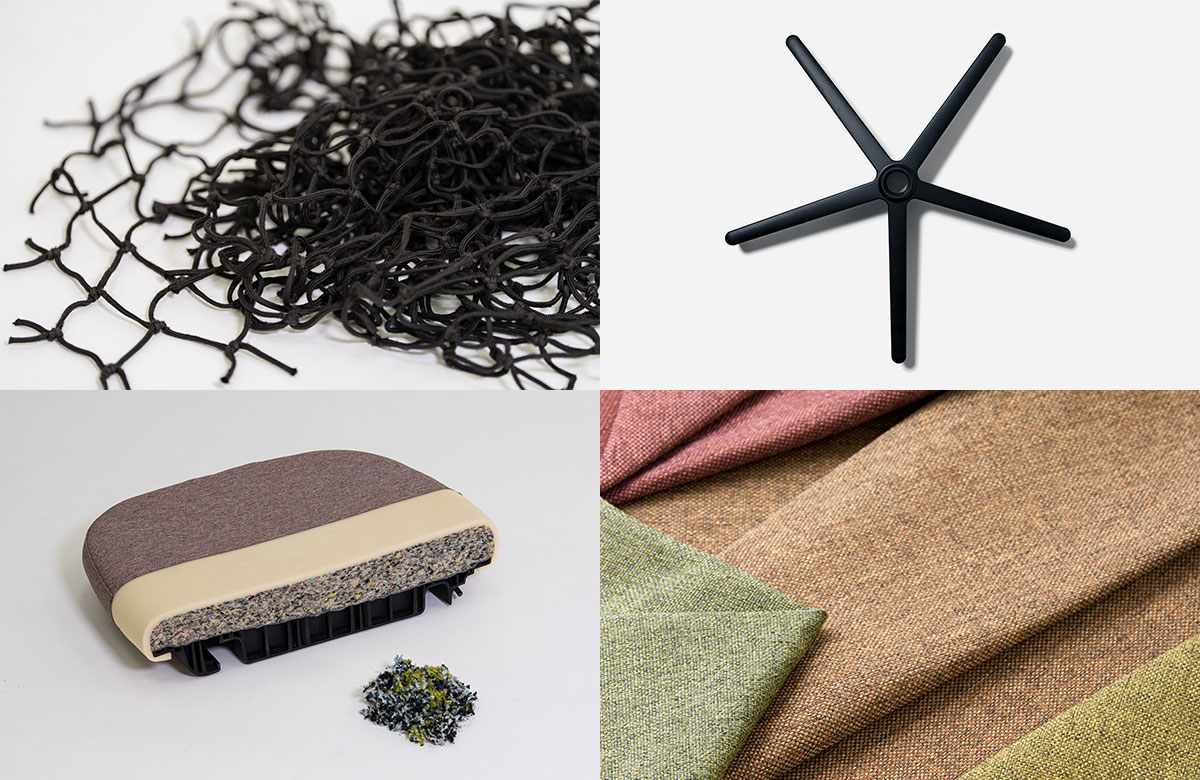 その他、各製品で使われている張地は、PETや海洋ゴミなど廃棄材のリサイクルファブリックを選択肢として取り入れています。