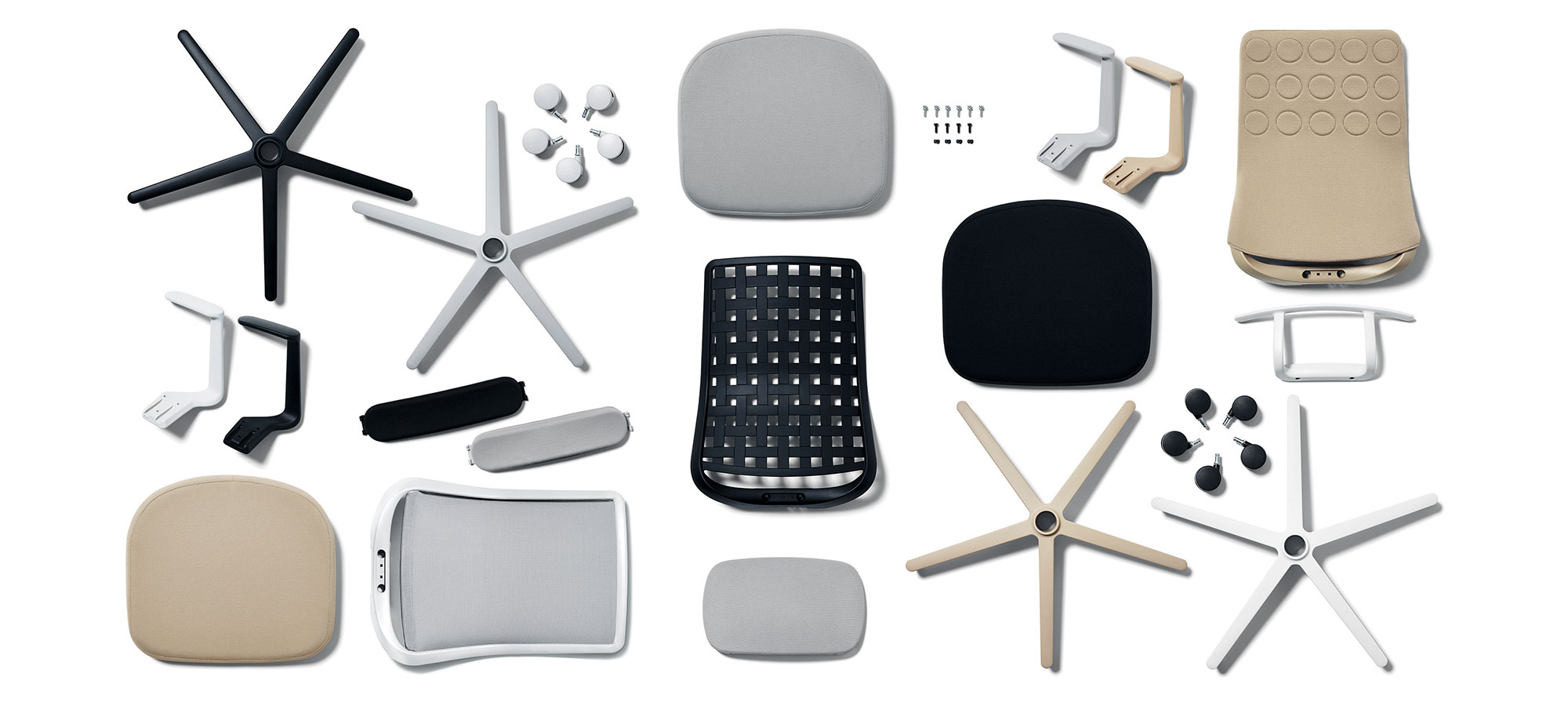 まずは、構成する素材種類が多く、リサイクルの難易度が高いオフィスチェアからスタート。購入時に製品をよりご理解いただき、リサイクルの観点からも製品を選定できるような努力とともに、リサイクル率の向上へ取り組んでいきます。