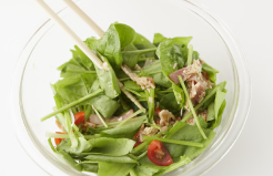 サラダほうれん草とソースをよく和えて、できあがり!
