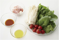 - サラダほうれん草を大きめに切る。