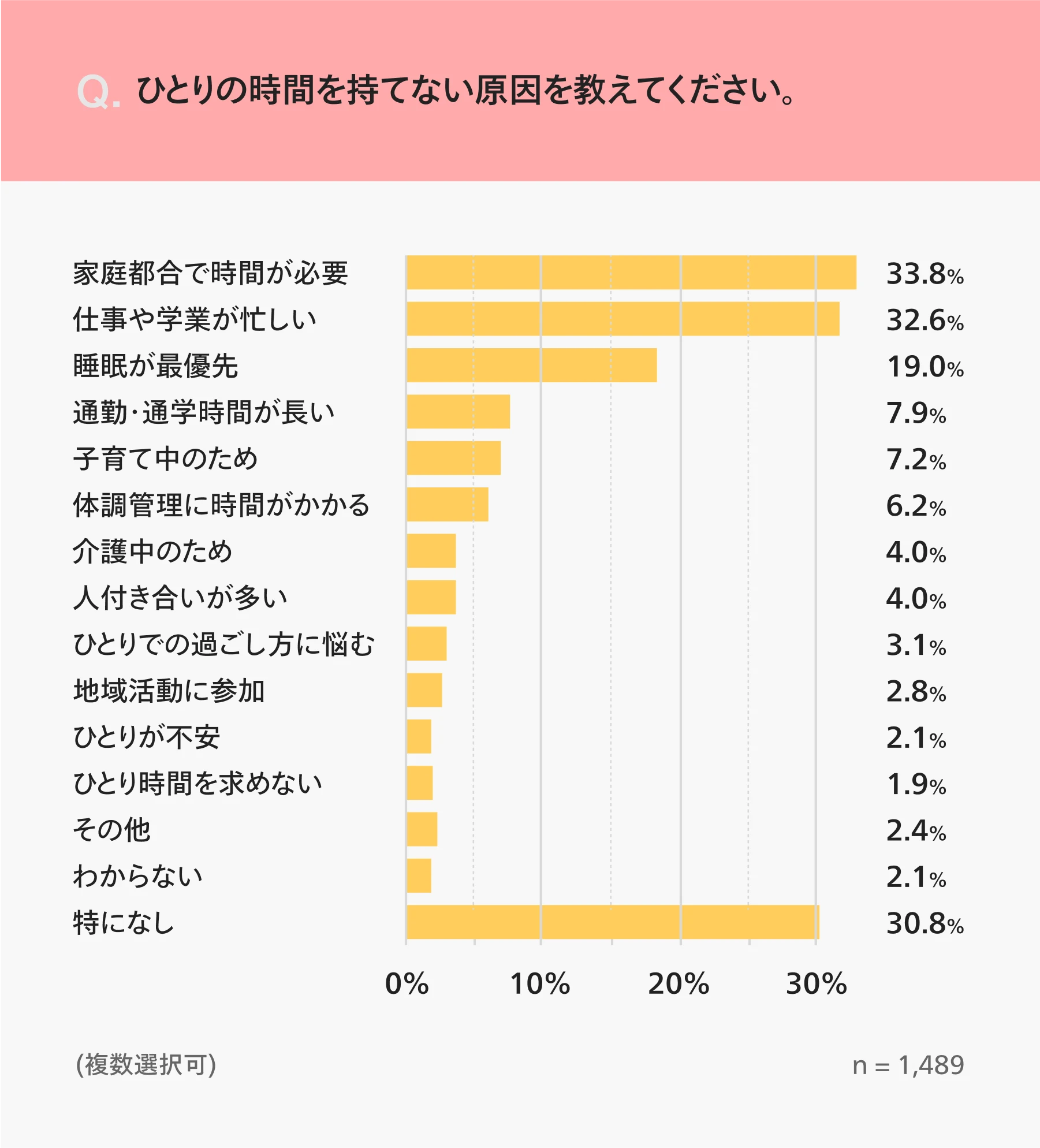 一方で、「家族の世話や家事に時間がかかる」「仕事や学業が忙しい」などの理由から、実際にひとり時間を確保できている人は限られています。