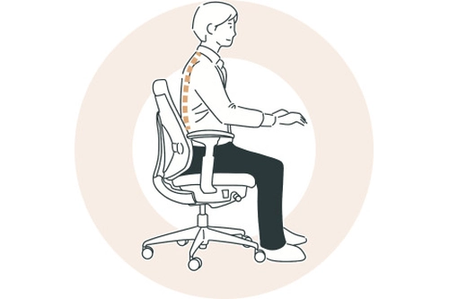 背骨をS字形状に保つことで、身体に負担をかけない姿勢を促します。