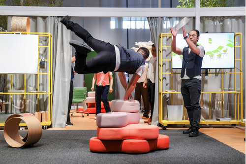 今回展示はLAMEXがコクヨグループに加入後、両ブランドが初めて融合した姿で共同出展したものです。展示ブースのデザインからコンテンツの企画、製品展示から没入型ミュージカルまで、コクヨ&LAMEXは緊密に協力し、オフィス空間のさらなる可能性を共に探求しました。単なる業界レベルの展示会ではなく、ブランド間の深い協働でもありました。コクヨのスペースソリューションのコンセプトとLAMEXの家具デザイン美学が、境界のない空間というコンセプトの下で交わり、ワークスタイルの未来を、多様なインスピレーションが融合した新しい体験として提示しました。