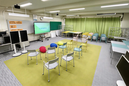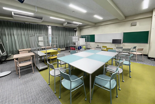 小川:可動式のテーブル、イス、間仕切りを採用することで、レイアウトを素早く切り替え、議論、制作、発表などPBLの多様な活動へ滑らかに移行できるようにしました。富士電機ITソリューションさんとも連携し、モニターなどICT機器もコードレスで移動可能に。配線に縛られず、画面を囲んで議論したり、壁際に退けて制作に集中したりと、授業の流れを止めない設えにしています。
