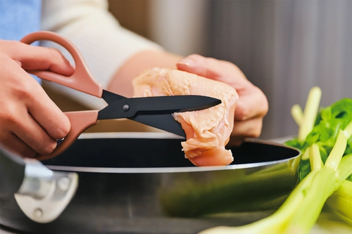 軽い力で切れる、鶏肉も滑らない、コンパクトで小回りが利くという機能性と、暖かみのあるデザイン。「洗えるハサミ<サクサ>(キッチン・食洗機対応)」ひとつでキッチンでの調理や楽しみが広がりますね。ぜひ体験してみてください。