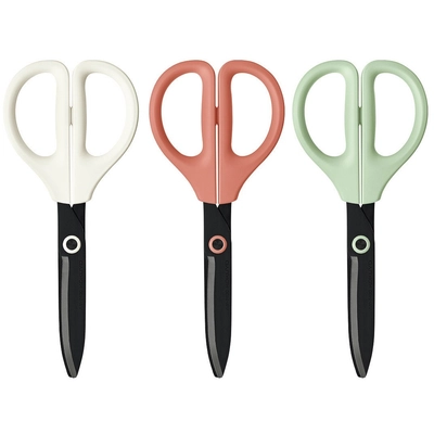 こちらの商品を見て「本当にキッチンハサミなの?」と思った方もいらっしゃるかもしれません。日常で使う文具ハサミのような柔らかなカーブと、優しいカラーが特長です。もちろん、魅力はその見た目や質感だけではありません。一般的なキッチンハサミと比べてコンパクトなので、扱いやすく、小回りが利くため、細かい作業にも便利です。