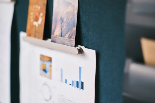 バーマグネットタイプの「壁につけるマグネット」と併用すれば、書類やメモなどを壁に貼りだすこともでき、ファイルケースや書類の山の中からガサゴソ探す必要もありません。