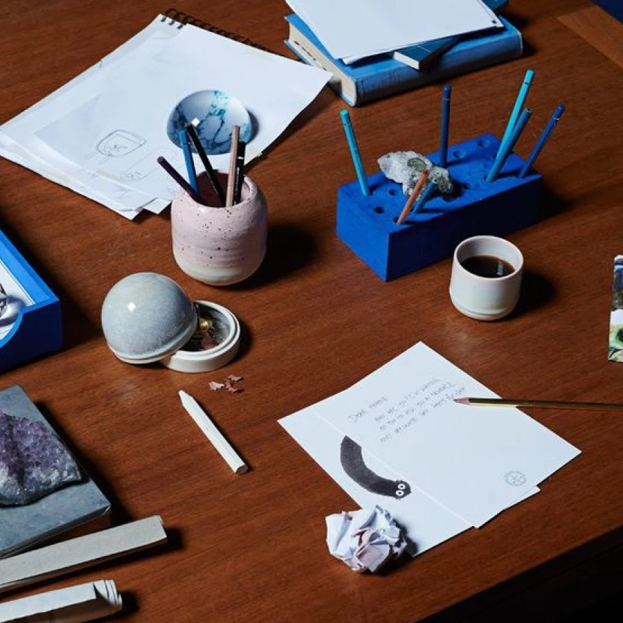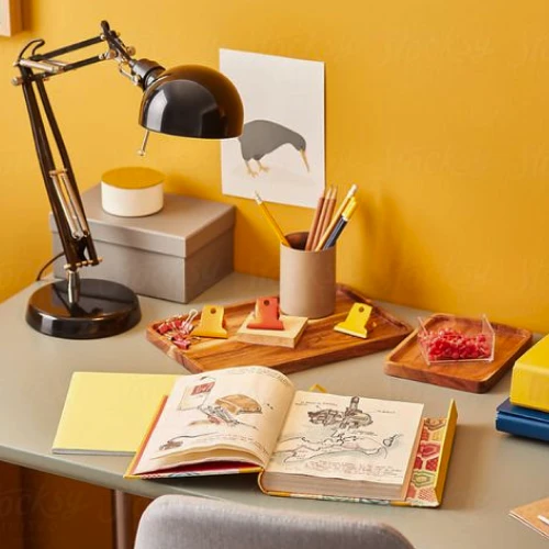 ちょっぴりレトロな佇まいが今っぽい。色合いをイエローで統一すれば、おしゃれなデスクまわりが完成。ちょっぴりレトロな雰囲気を活かして、学生時代の懐かしさも感じられるコーディネートです。