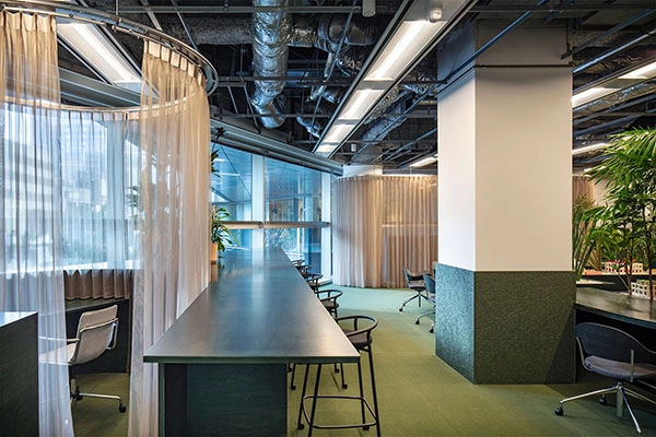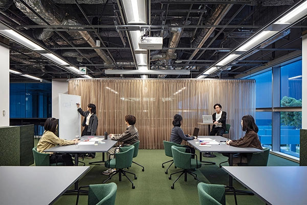 コクヨの人材育成施設。これからの未来をつくるため、社員が好奇心をもったテーマを自主的に掘り進めたり、仲間と暗黙知や情熱をシェアすることで新たな発見やインスピレーションがうまれる場になることを目指している。