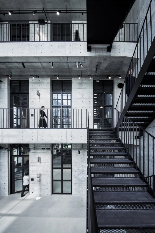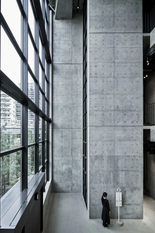 場づくりのコンセプトは「みんなでつくるスタジオ」。富士フイルムデザイン部門の80名全員が参画し、建築や設備、内装から家具やサインに至るまで、共創を通じて建築を構成するあらゆるプロダクトデザインに関与した。建物はコンクリートのソリッドな外観と格子状の広い窓が特徴で、バウハウスの思想を受け継ぎ余分なものをそぎ落とした機能美を追求。細部までこだわり抜いたプロダクトの集積によって成り立つこの空間には、創造性を刺激する研ぎ澄まされた緊張感が漂う。