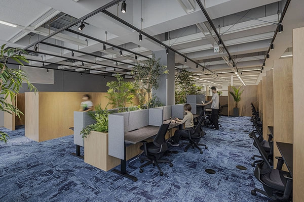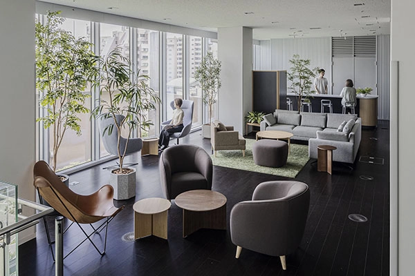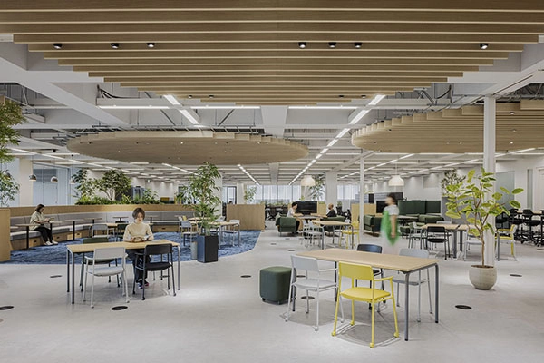 「顧客とつながる・社員とつながる・社会とつながる」というテーマのもと、ワークエリアでは社員同士がつながることを重視。組織を超えて横連携を促進するための場を構築することで、オフィス内で実際にアクションが起きる環境を目指した。