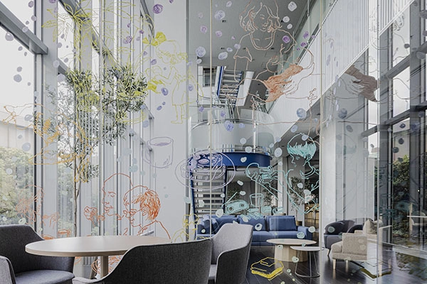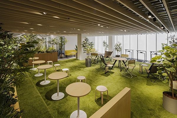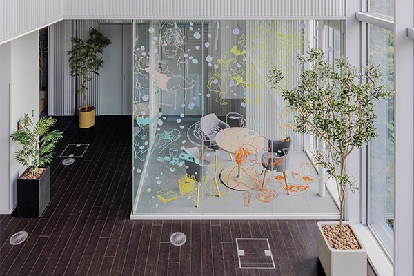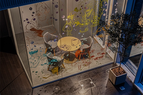 中階段でつながる低層フロア、多数の社員が使用する食堂フロア、他拠点の社員も利用可能なコワーキングフロアを「社員とつながる」ための重要なフロアと位置付け、多様な交流が生まれる場として構築した。これにより社員は目的に応じて様々なフロアを行き来し、自部門内だけでなく他部門とのつながりも促進される。 「つながる」エリアには、5人のアーティストによって表現された様々なつながりを表すアートを配置し、社員の感性を刺激する。