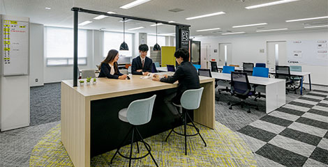 会社や部門、個人の壁を越え、メンバーが一体となって課題解決していく集団へ。 互いの強みを協業"SESSION"により掛け合わせ、提案の深化とスピードアップを実現していきます。 次々と試みられる働き方改革の「実験」を、ぜひご体感ください。